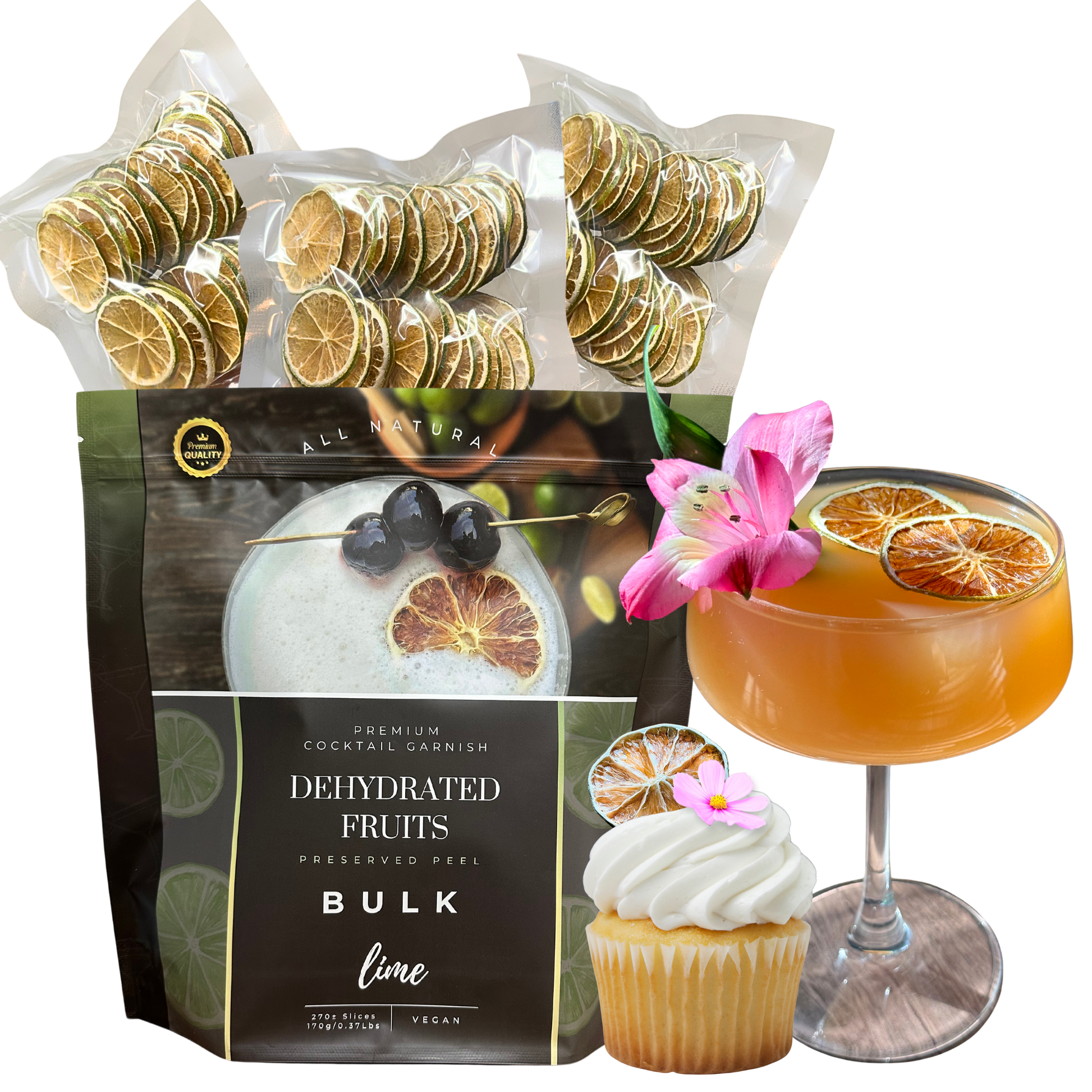 Upgrade your cocktail game today—order now and experience the flavor and flair of premium dehydrated lime slices.